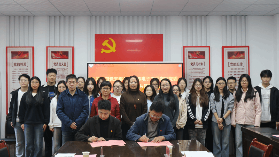 为深入学习贯彻党的二十届四中全会精神,推动基层党建共建共享,按照校党委《关于对结对共建党支部进行调整的通知》要求,10月31日,机关党委第十四党支部与物理与电子工程学院党委学生第一党支部在弘道楼217室举行了结对共建签约仪式。机关党委第十四党支部、物理与电子工程学院学生第一党支部党员参加仪式,会议由物理与电子工程学院党委副书记王婧莹主持。