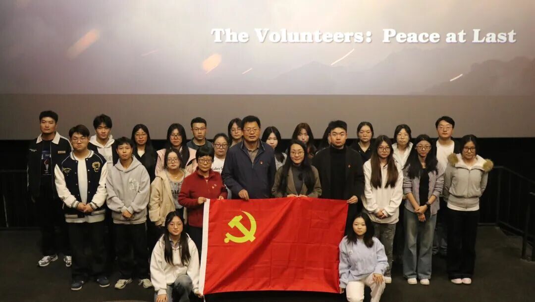 签约后,两共建支部开展了理论学习,集中学习党的二十届四中全会公报,随后,观看爱国主义影片《志愿军:浴血和平》,影片聚焦抗美援朝战争“以战促谈”的核心,以“谈判桌”与“主战场”双线并叙,既展现了老一辈革命先烈在谈判中坚守和平立场、保家卫国的高贵精神,也还原了志愿军将士在金城战役、坑道防御等战斗中,浴血奋战坚守阵地的壮烈场面,彰显了祖国和人民利益高于一切的崇高信仰和爱国情怀,让在场党员深刻感悟到革命先辈用生命换来和平的珍贵。不忘初心,牢记使命,当影片结束,随着灯光亮起,大家胸前的党徽熠熠闪光,此次观影活动使学生党员汲取奋进力量,教工党员更加坚定了立足岗位践行使命的信念。